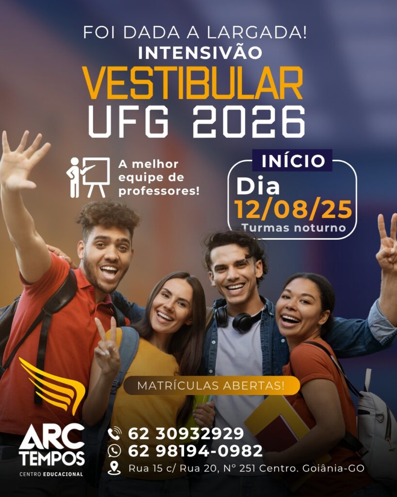 O Intensivão Vestibular UFG 2026 foi desenvolvido especialmente para candidatos que prestarão esse exame. Com professores experientes, material exclusivo, estudo dirigido e simulados específicos, o curso oferece uma preparação estratégica e eficiente, capacitando o aluno a enfrentar com confiança e segurança os desafios do vestibular da UFG e de outras instituições.
